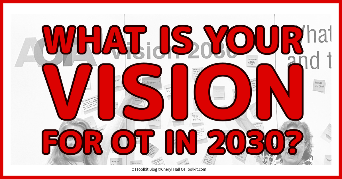 The OT Toolkit crew visited the AOTA “vision” wall at the last conference and I saw a lot of support for mental health OT, occupational justice and advocacy. AOTA’s Vision Statement for 2030 recognizes the importance of inclusivity and supports meaning in each person’s life. “Enriching life for ALL individuals…